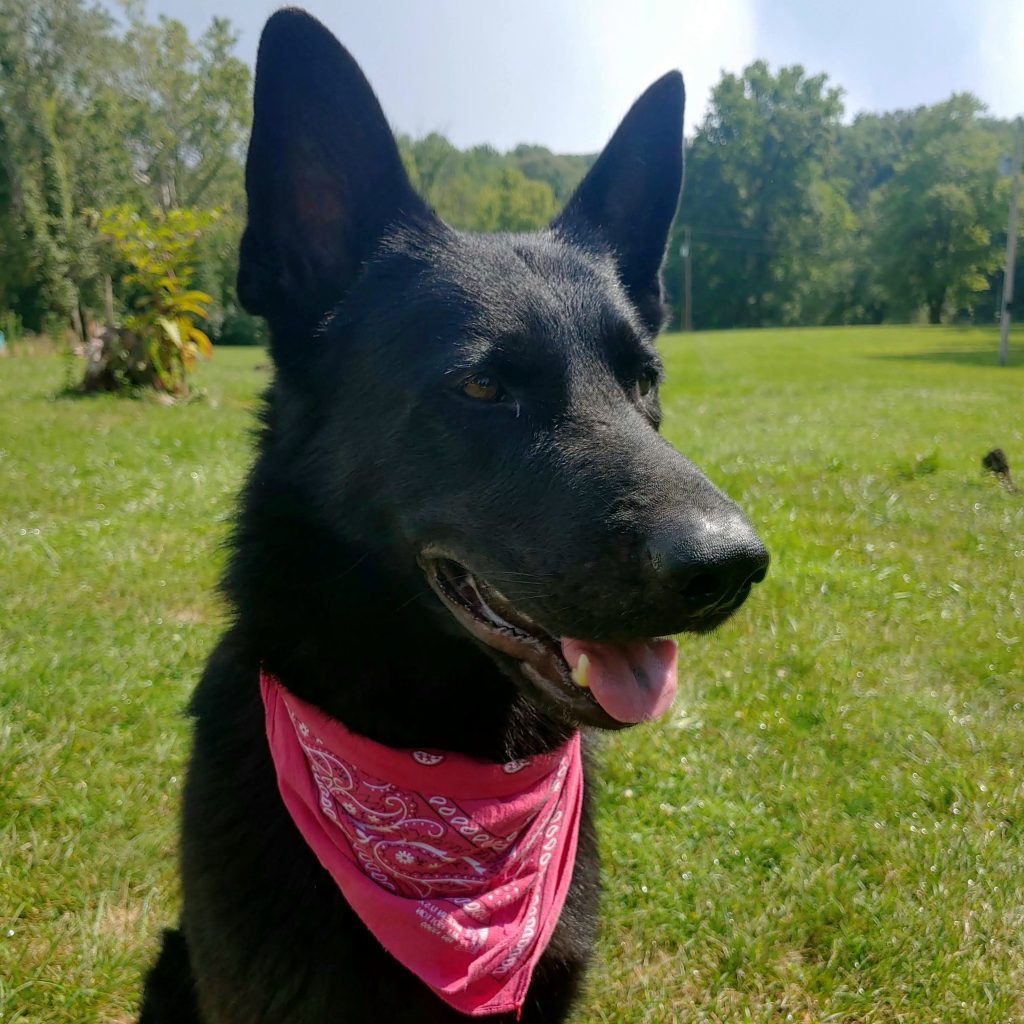 This all black German Shepherd is the face of the Black Dog Deli Brand. He is the first baby the owners took into their family… and trust us, it shows.